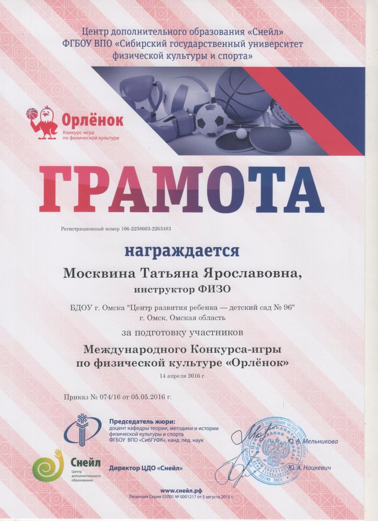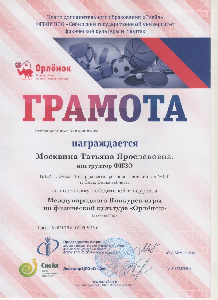 Грамота ОРЛЁНОК 2016 за подготовку победителей и лауреатов.jpg