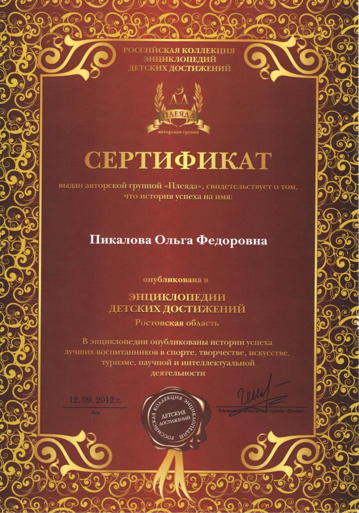 Владелец: Ольга Федоровна Пикалова