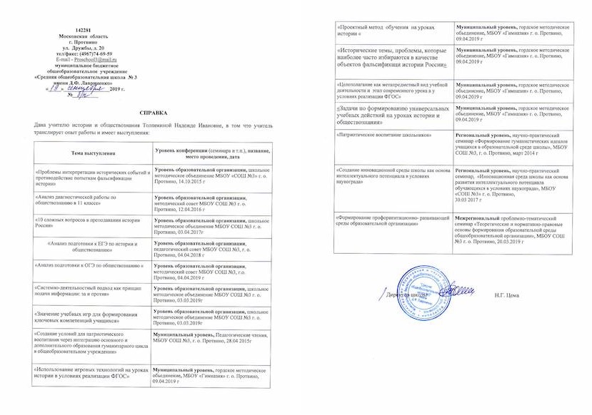 Справка СОШ №3 - Выступления. Протоколы ГорМетодОбъединения