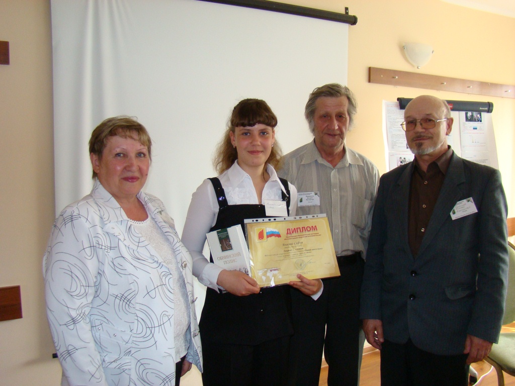 | Описание: | Софья с представителями экспертной комиссии Всероссийской конференции "Первые шаги в науку". г. Обнинск, 2012 год. Софья заслужила звание Лауреата I степени. |