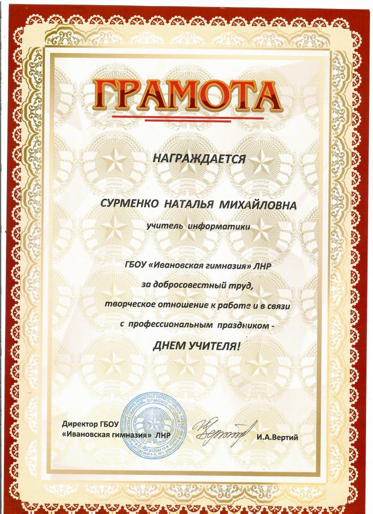 Грамота День Учителя