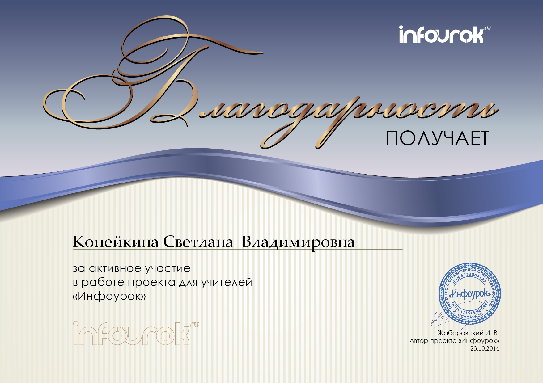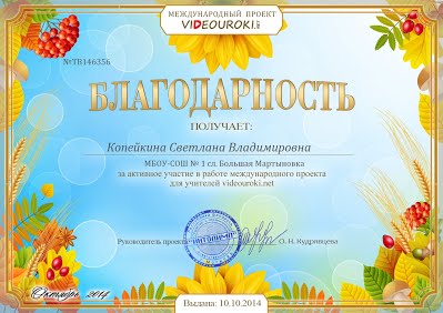 Благодарности, сертификаты, свидетельства