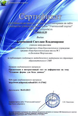 сертификаты о публикации