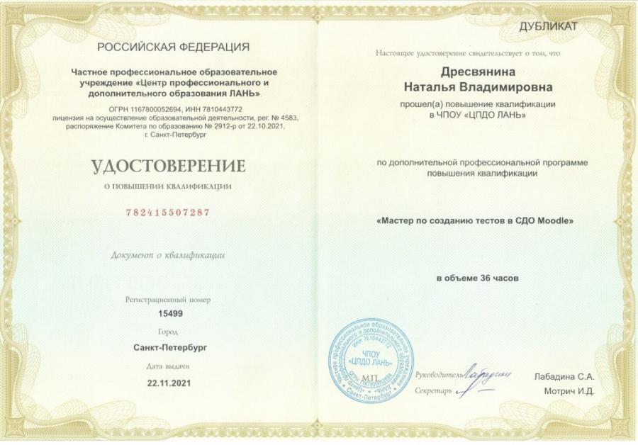 Повышение квалификации:
