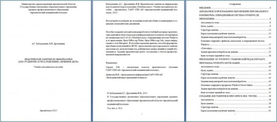 - Бабаджанян, Алиса Гургеновна. Практические занятия по информатике для студентов I курса отделения «Лечебное дело» [Электронный ресурс] : Учебно-методическое пособие / А. Г. Бабаджанян, Н. В. Дресвянина; ГОУ СПО Архангельский медицинский колледж. - Электрон. текстовые дан. - Архангельск : ГАОУ СПО АО АМК, 2015. - 168 с.