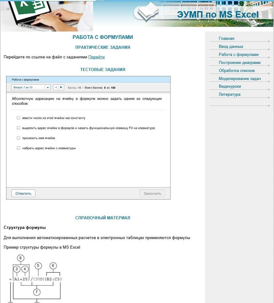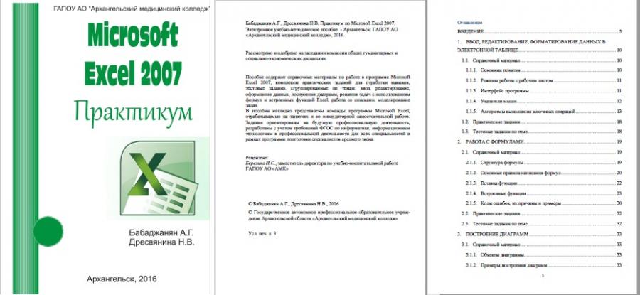 - Электронный учебно-методический комплекс «MS Excel 2007. Практикум» Гриф ГАОУ СПО АО АМК, 2016 г. Гриф УМО ССУЗов