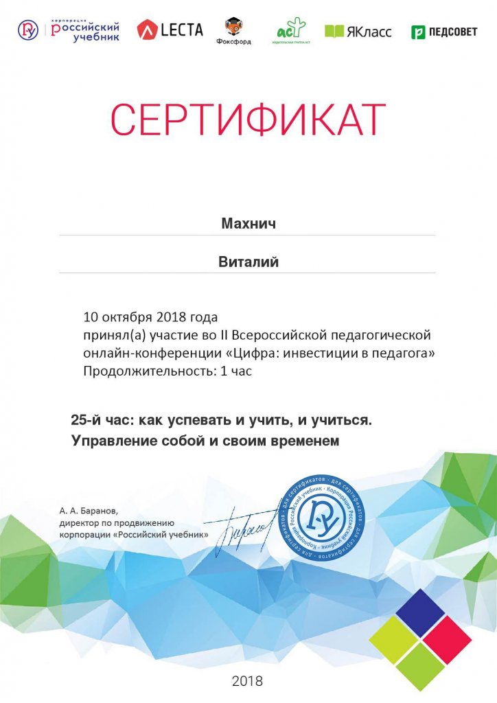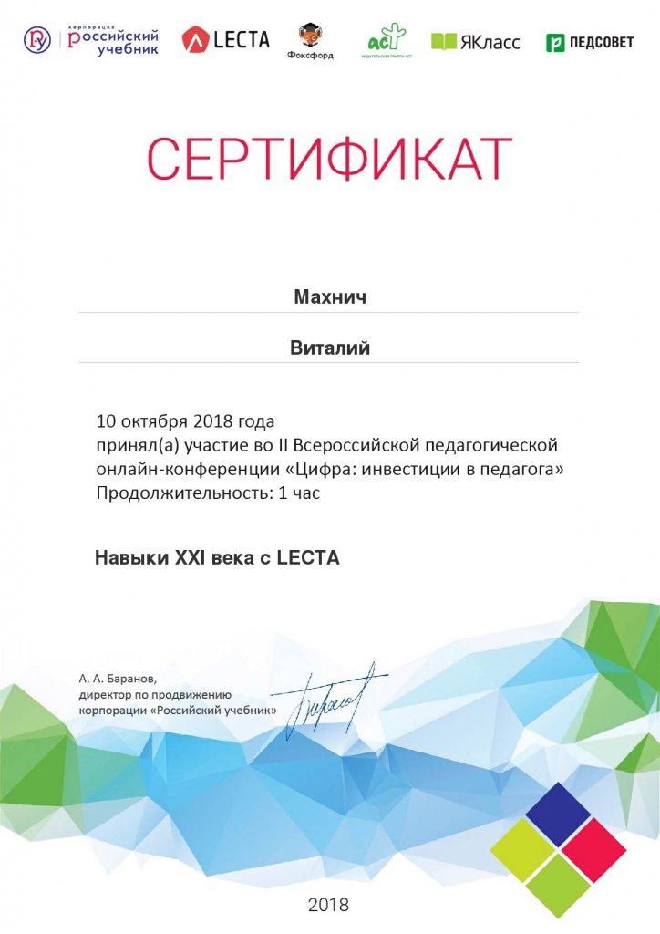 Сертификаты, свидетельства о повышении квалификации
