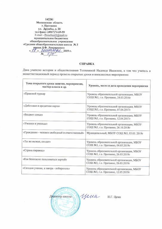Справка СОШ №3 о проведении открытых...