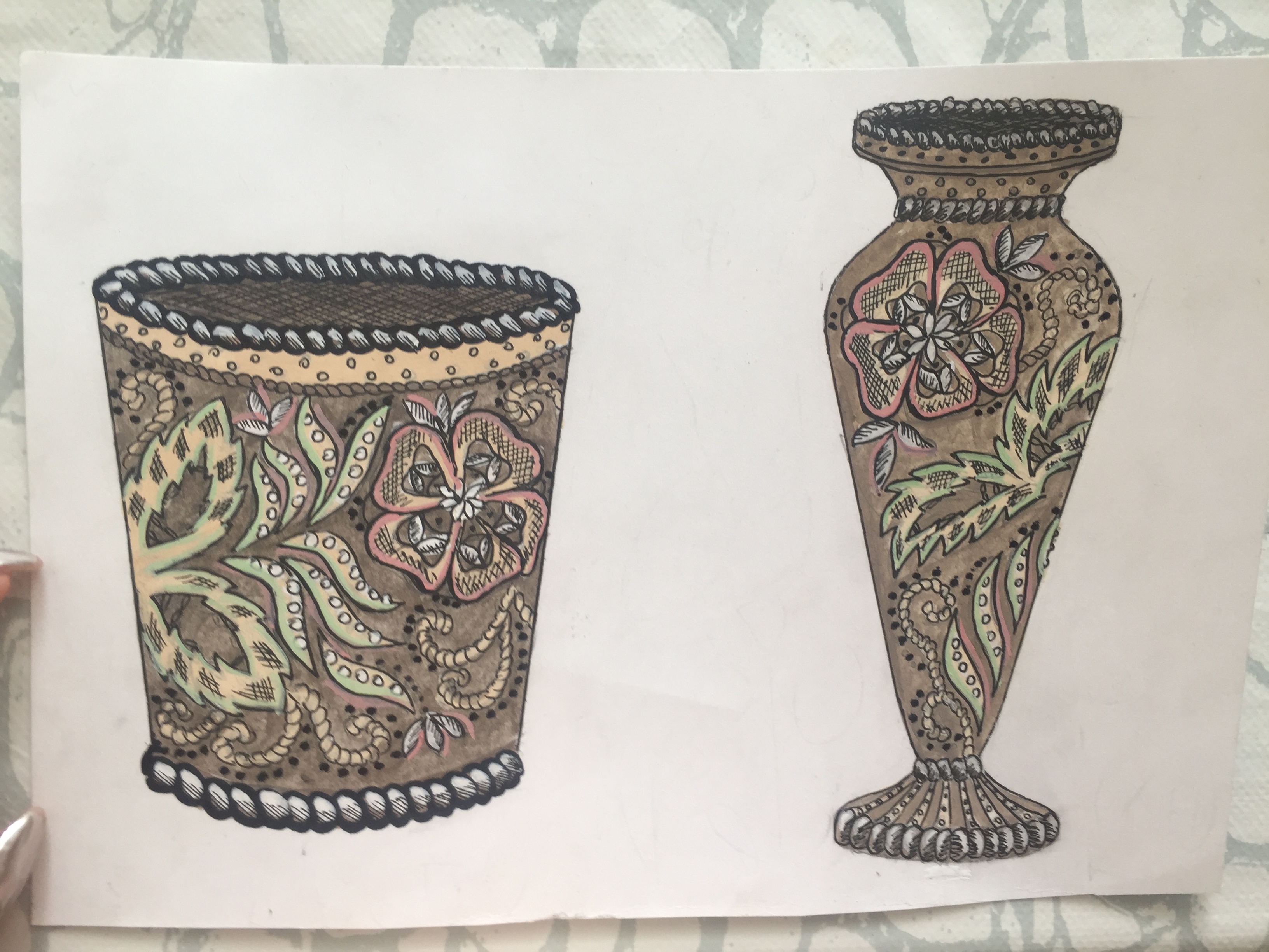 Пока продолжаем заниматься по плану Декоративной живописи. Продолжаем разработку декоративных эскизов по теме "Декоративное решение отдельных предметов" на основе выполненной работыс натуры и фотографий.