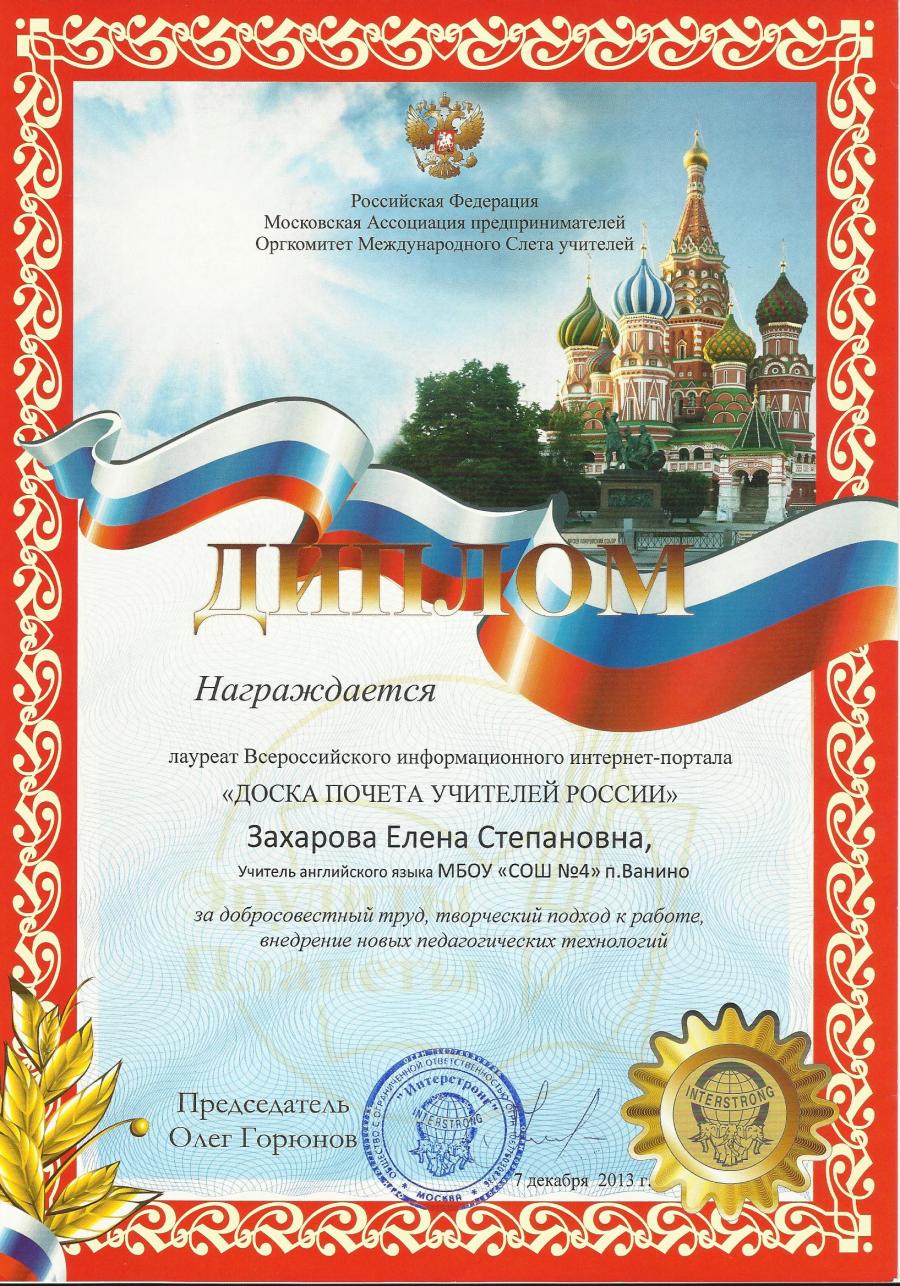 Учитель английского языка МБОУ СОШ №4 городского поселения "Рабочий поселок Ванино" Ванинского муниципального района Хабаровского края
