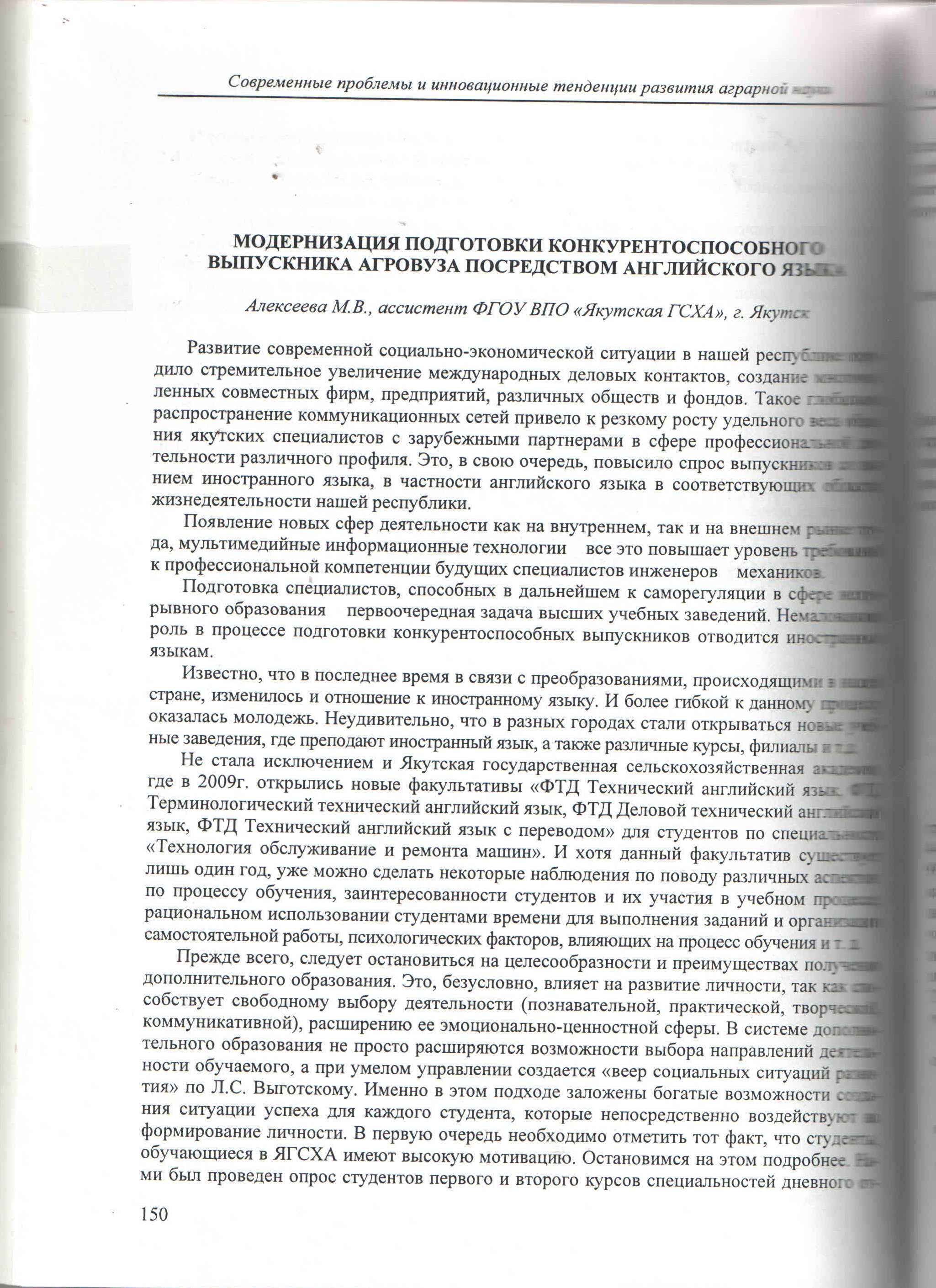 Ст.лаборант кафедры "Языка и культуры" ЯГСХА