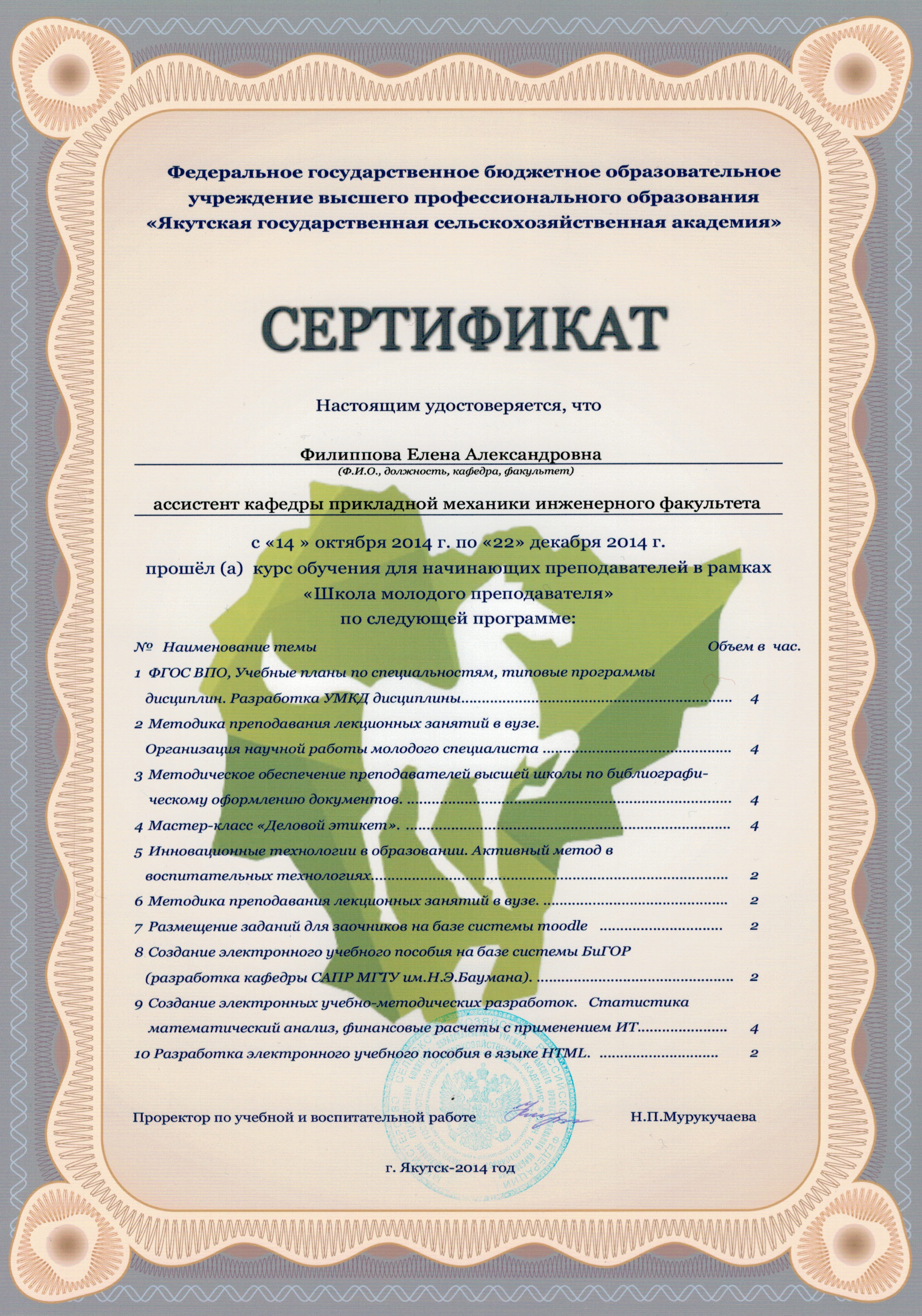 свидетельство повышения квалификации