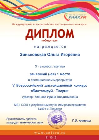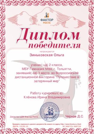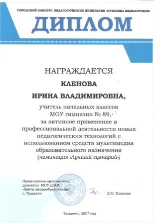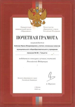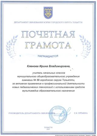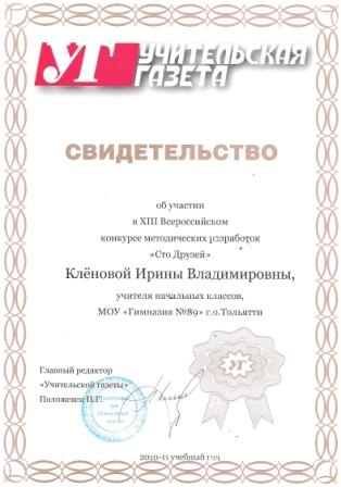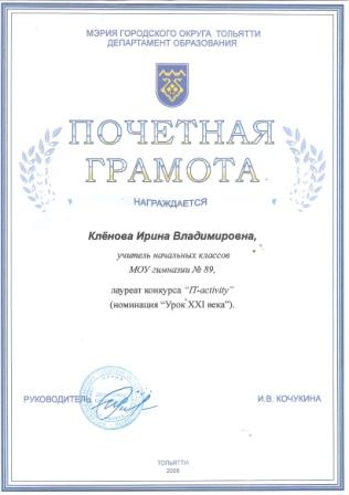 учитель начальных классов МБУ СОШ с углубленным изучением отдельных предметов № 89