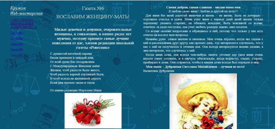 Ваши газета и школьная web-мастерская стали настоящей творческой лабораторией.