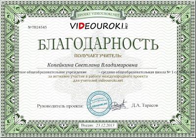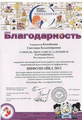 Благодарности, сертификаты, свидетельства