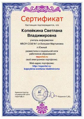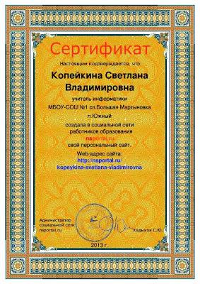 СЕРТИФИКАТЫ О ПУБЛИКАЦИИ