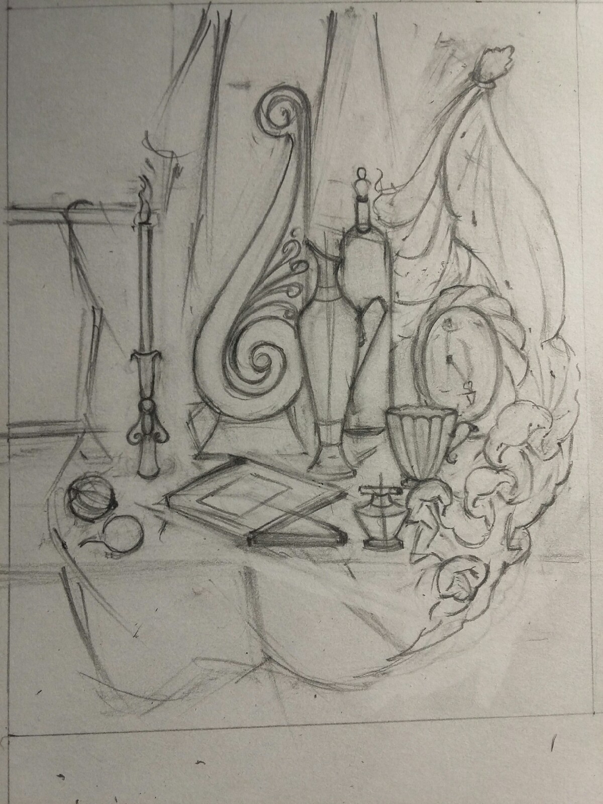Натурная постановка натюрморта для декоративного решения натюрморта с включением гипсовой консоли