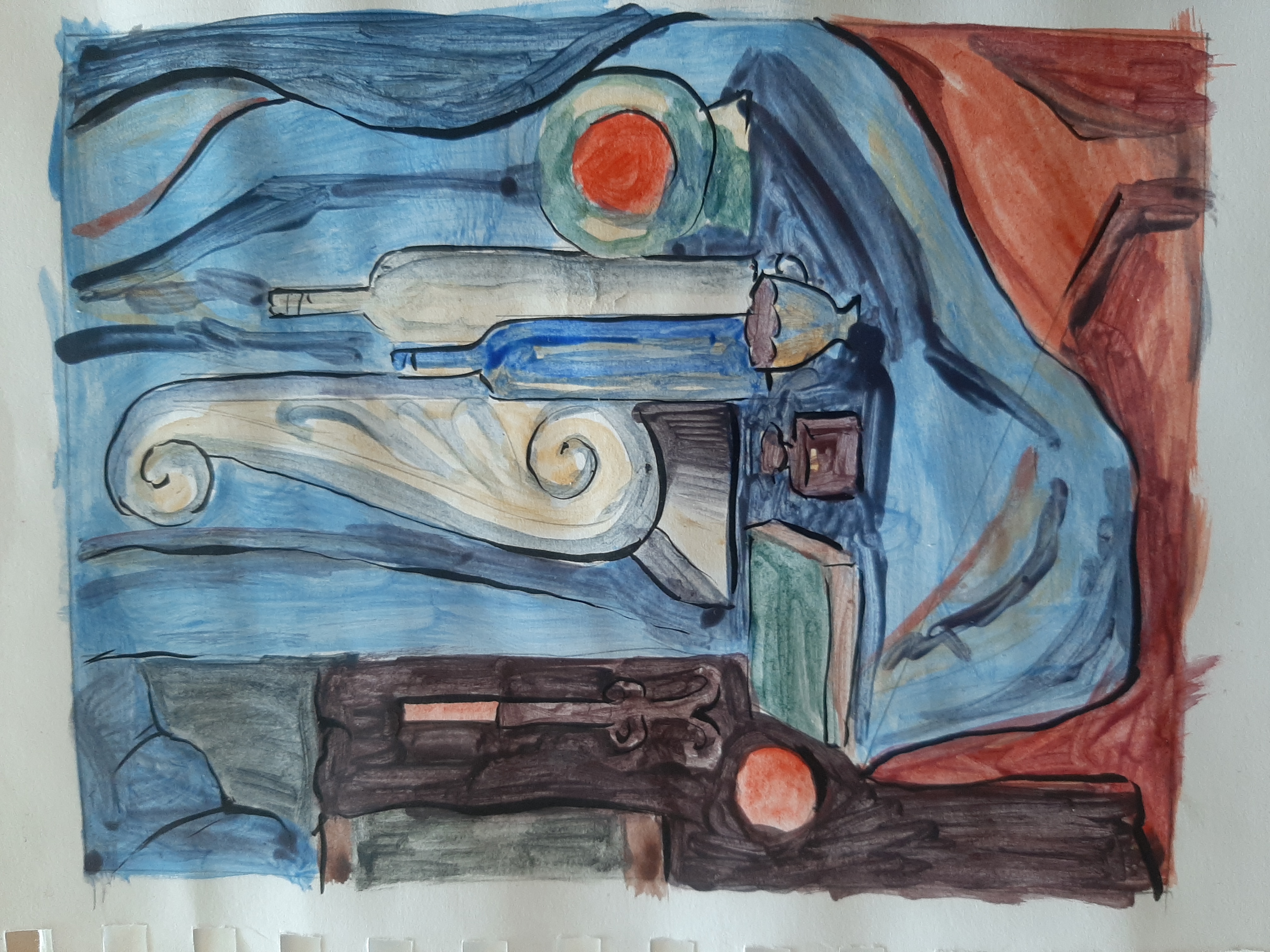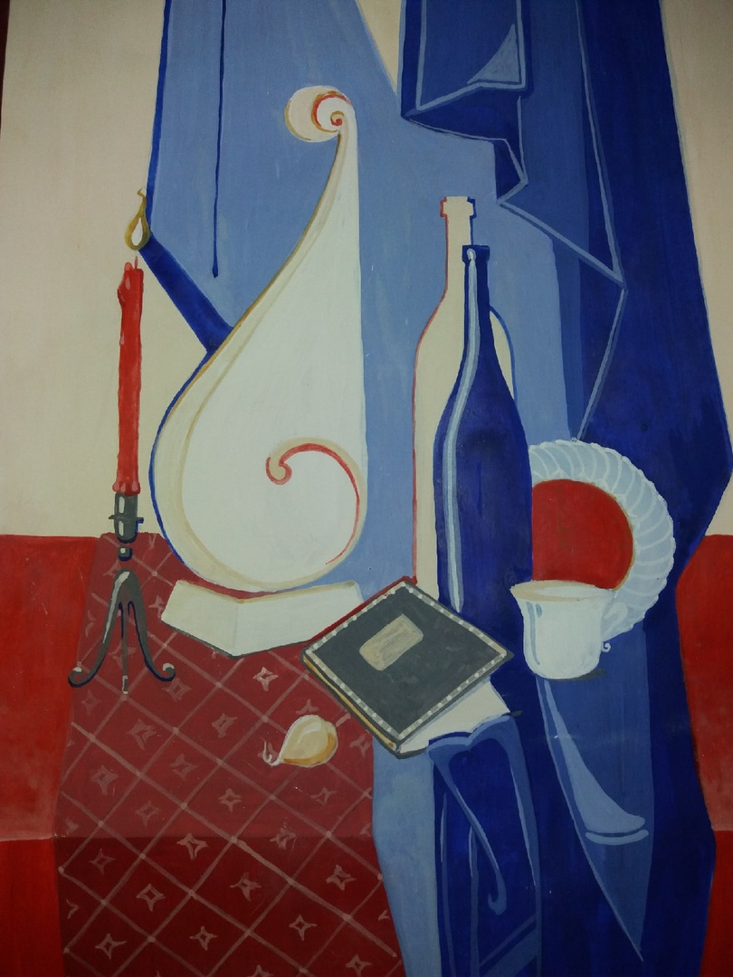 Здравствуйте! Пока продолжаем заниматься по плану живописи. Продолжаем разработку декоративных эскизов по теме "Декоративное решение натюрморта" на основе начатой работы н-т с гипсовой консолью и фотографий.