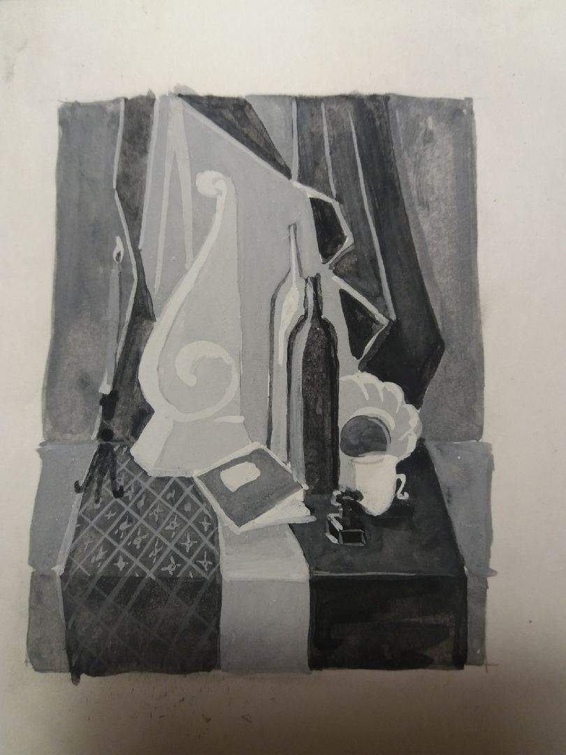 Переходите ко 2-му этапу - выполнение тональной задачи на основе утверждённого линейно-конструктивного эскиза 9 ахроматическими градациями. Следуйте моим рекомендациям сделанным ранее. Можете усиливать контрасты по тональности, или ослаблять, применять контурную линию в участках сближенных по тональности силуэтах. Будут вопросы, пишите здесь и в беседе группы ВК.