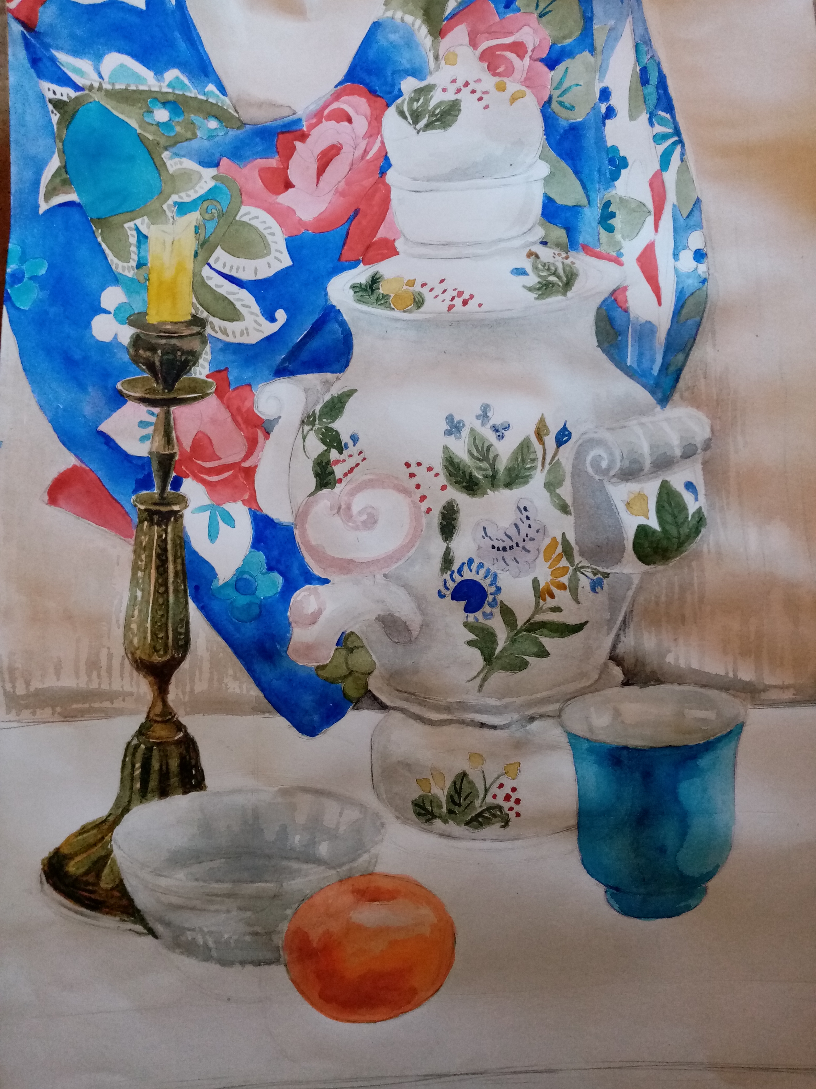 ТЕМА: "Декоративно-композиционное решение натюрморта с предметами быта, украшенными орнаментами" 18ч. (4 выполнено)