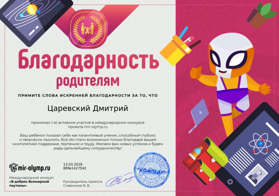 Благодарность родителям