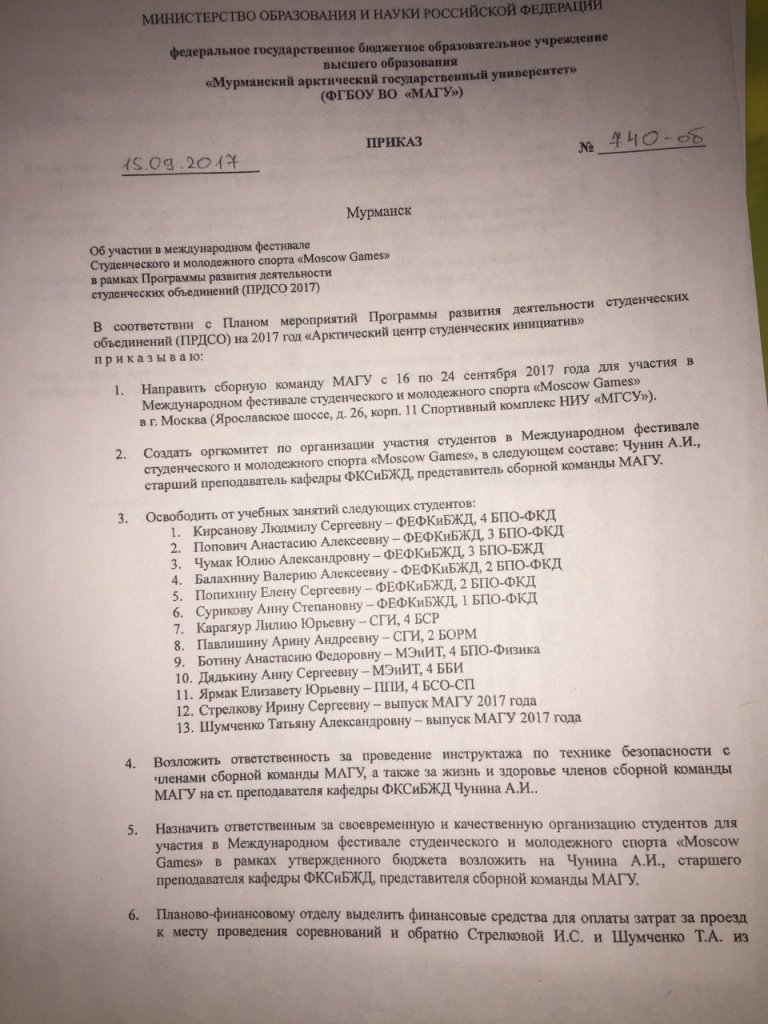 В составе сборной команды МАГУ участник международного фестиваля студенческого и молодежного спорта в г. Москве. 18-22 сентября 2017 г.