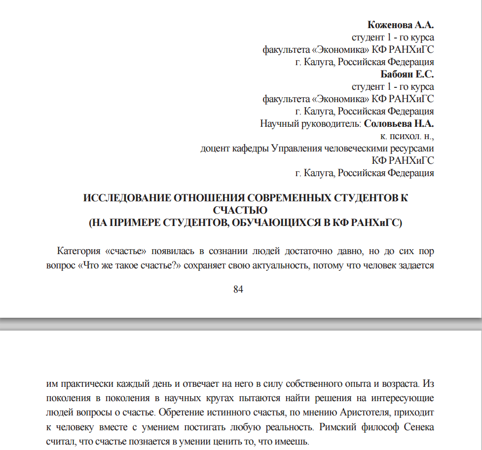 Название доклада: ИССЛЕДОВАНИЕ ОТНОШЕНИЯ СОВРЕМЕННЫХ СТУДЕНТОВ К СЧАСТЬЮ (НА ПРИМЕРЕ СТУДЕНТОВ, ОБУЧАЮЩИХСЯ В КФ РАНХиГС)