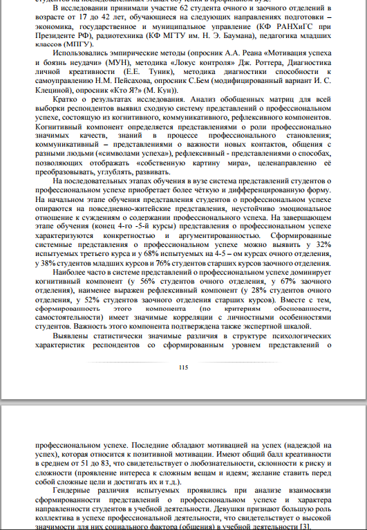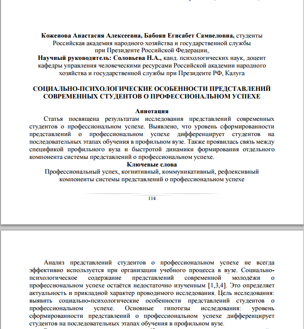 Название доклада: СОЦИАЛЬНО-ПСИХОЛОГИЧЕСКИЕ ОСОБЕННОСТИ ПРЕДСТАВЛЕНИЙ СОВРЕМЕННЫХ СТУДЕНТОВ О ПРОФЕССИОНАЛЬНОМ УСПЕХЕ