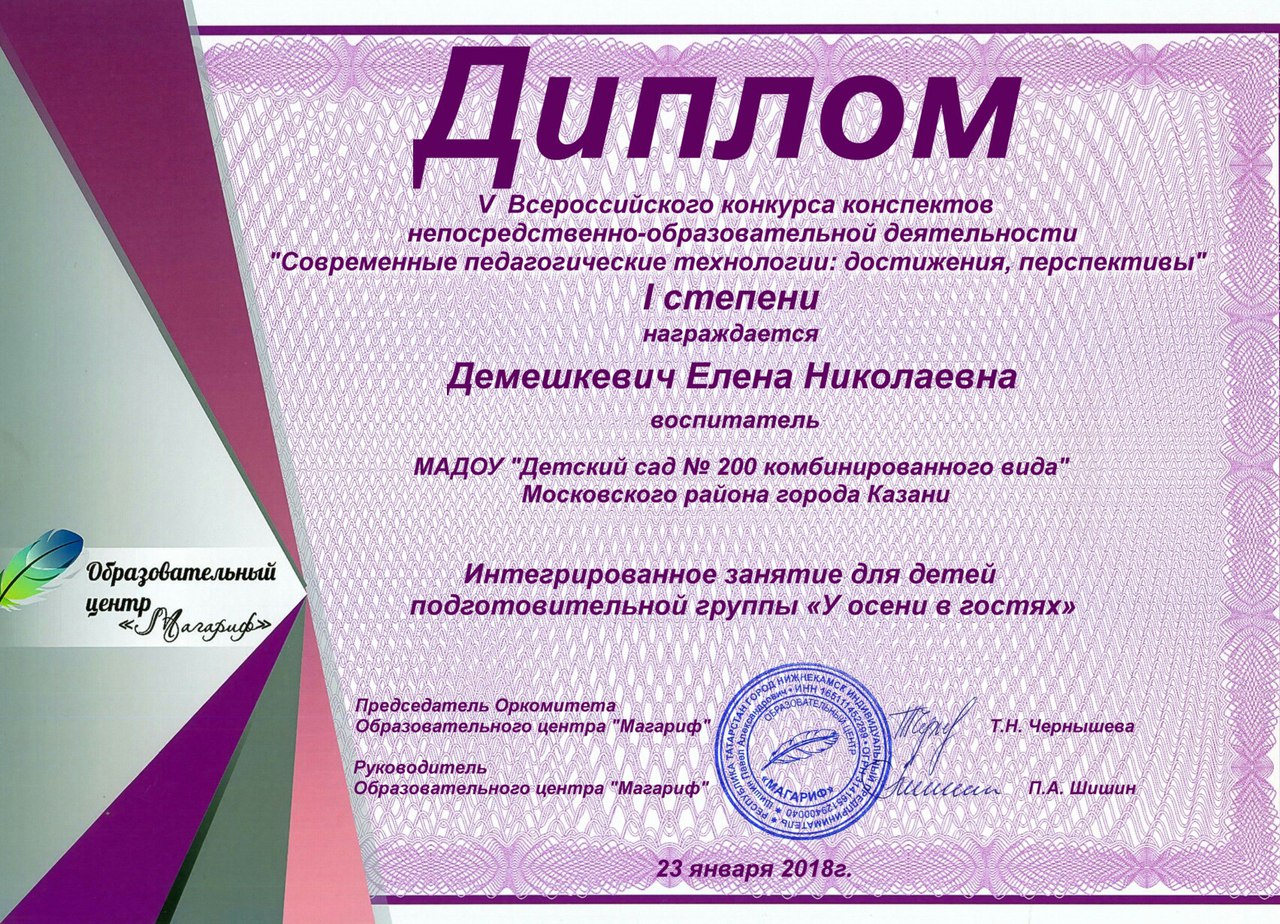 Примечание: если перечисленные методики используются, то это оценивается более высоким баллом при аттестации.