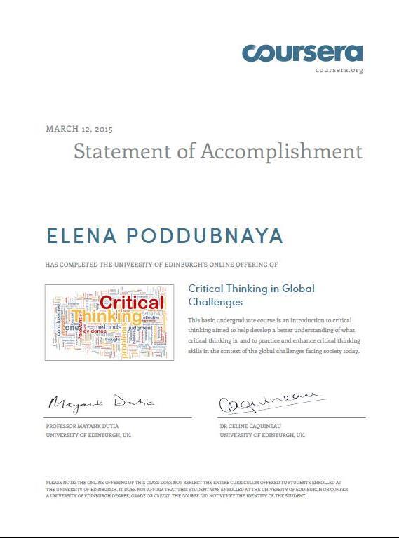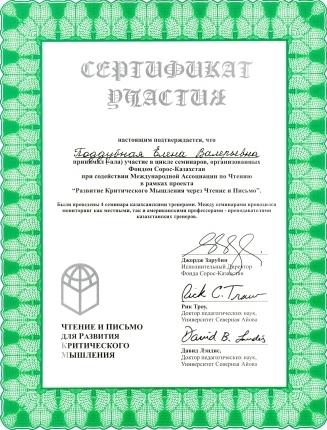 Critical thinking in global changes, сертификат