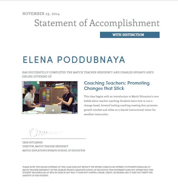 Coaching Teachers: Promoting changes that stick Эффективный коучинг, свидетельство об окончании с отличием