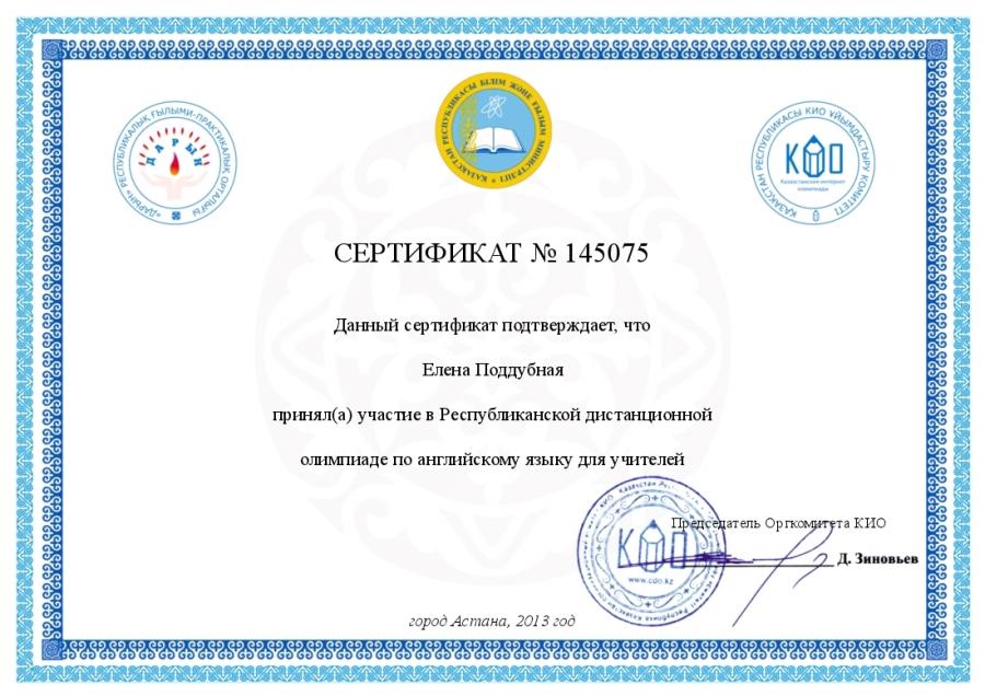 Республиканская олимпиада по английскому языку для учителей КИО-Дарын