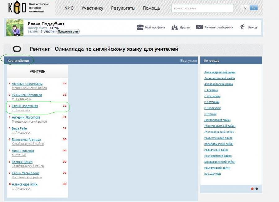 Лучший результат города, 3 место в области
